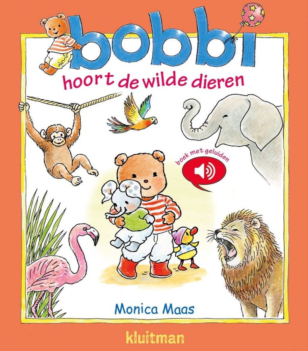 De Bobbi-geluidenboeken zijn heel populair bij de Bobbi-fans. Bobbi hoort de wilde dieren is alweer de vijfde titel in de serie. Bobbi gaat op avontuur en luistert naar de geluiden van wilde dieren. Hoor je de leeuw brullen? De olifant trompettert erop los. De papegaai en de flamingo maken een hoop kabaal en wat maakt de aap eigenlijk voor geluid? Met de leuke versjes, kleurrijke illustraties en natuurlijk beertje Bobbi is dit boek weer een feest voor peuters (en baby’s, kleuters, ouders…).